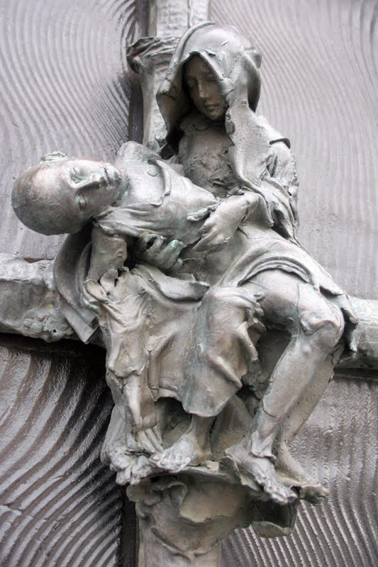 Para quem não sabe, segundo a tradição devemos abraçar a imagem de Santiago que está no altar-mor (por trás) e pedir 3 desejos, outro dos rituais é bater 3 vezes na cabeça da escultura que o Mestre Mateo fez de si próprio, de modo a adquirirmos sabedoria. E ainda, logo à entrada, se o Pórtico não estiver com obras como em 2009, colocar os cinco dedos da mão direita nas cavidades existentes na coluna de pedra, onde, logo acima, uma bela imagem do Apóstolo está esculpida.